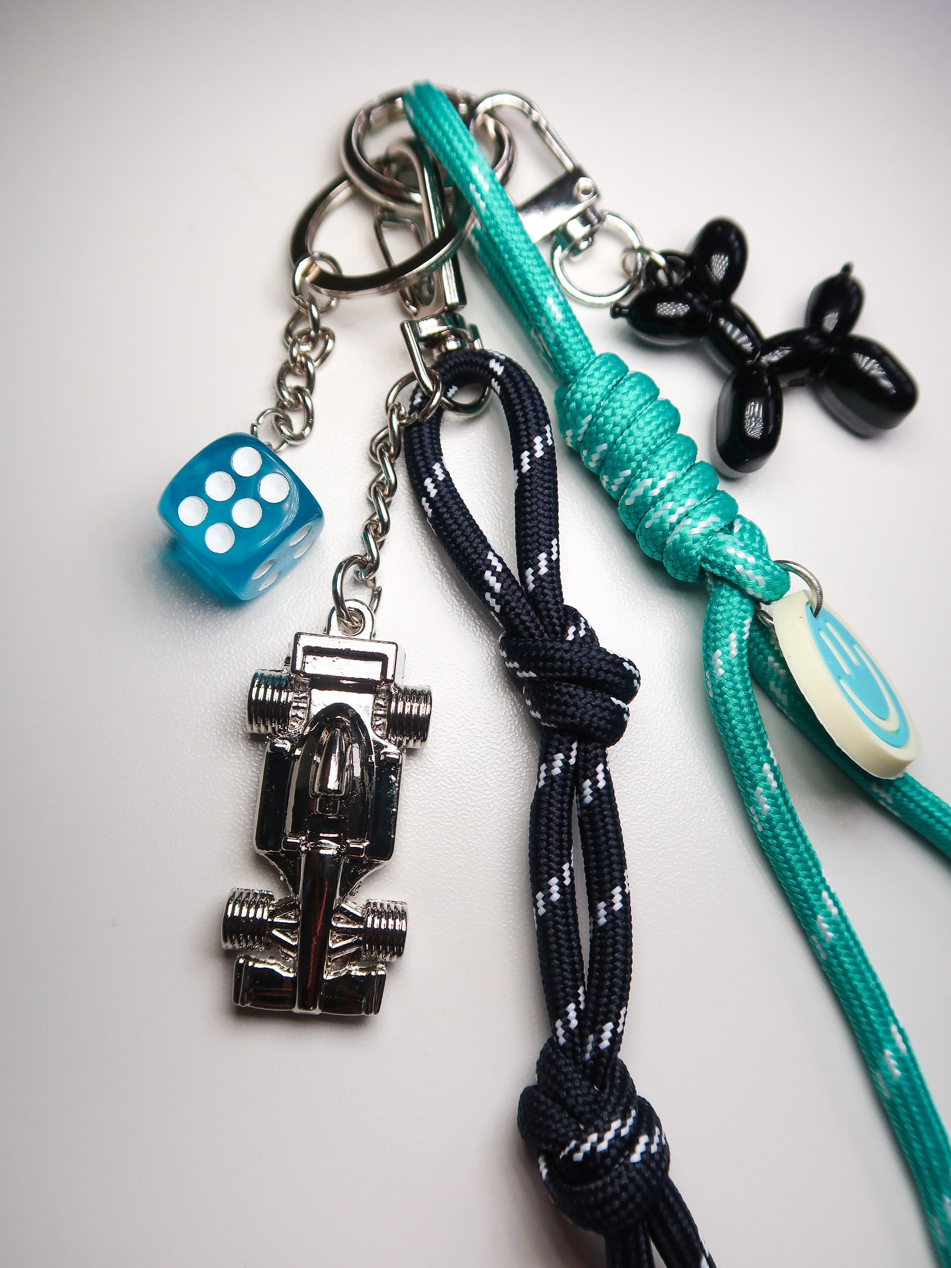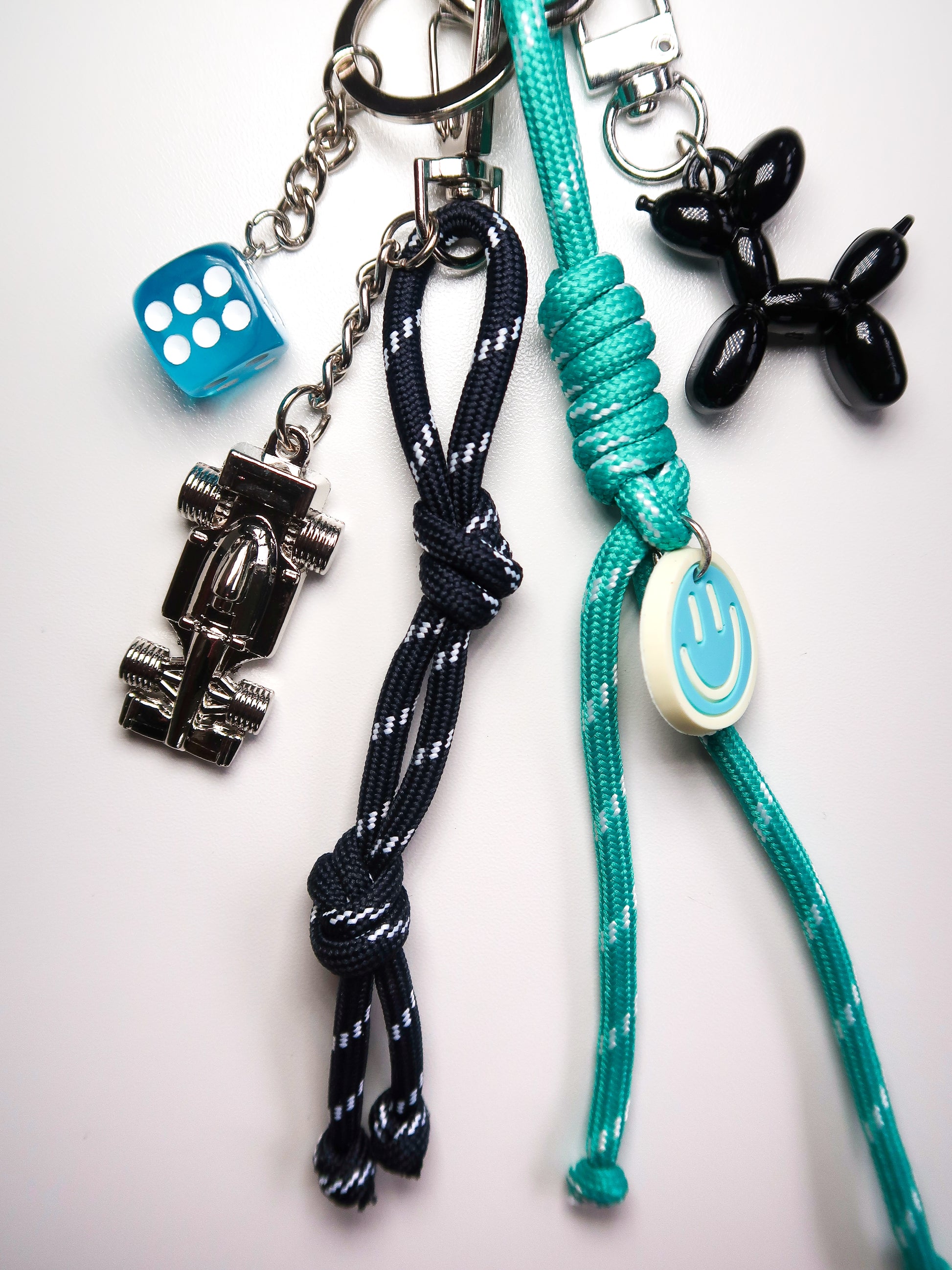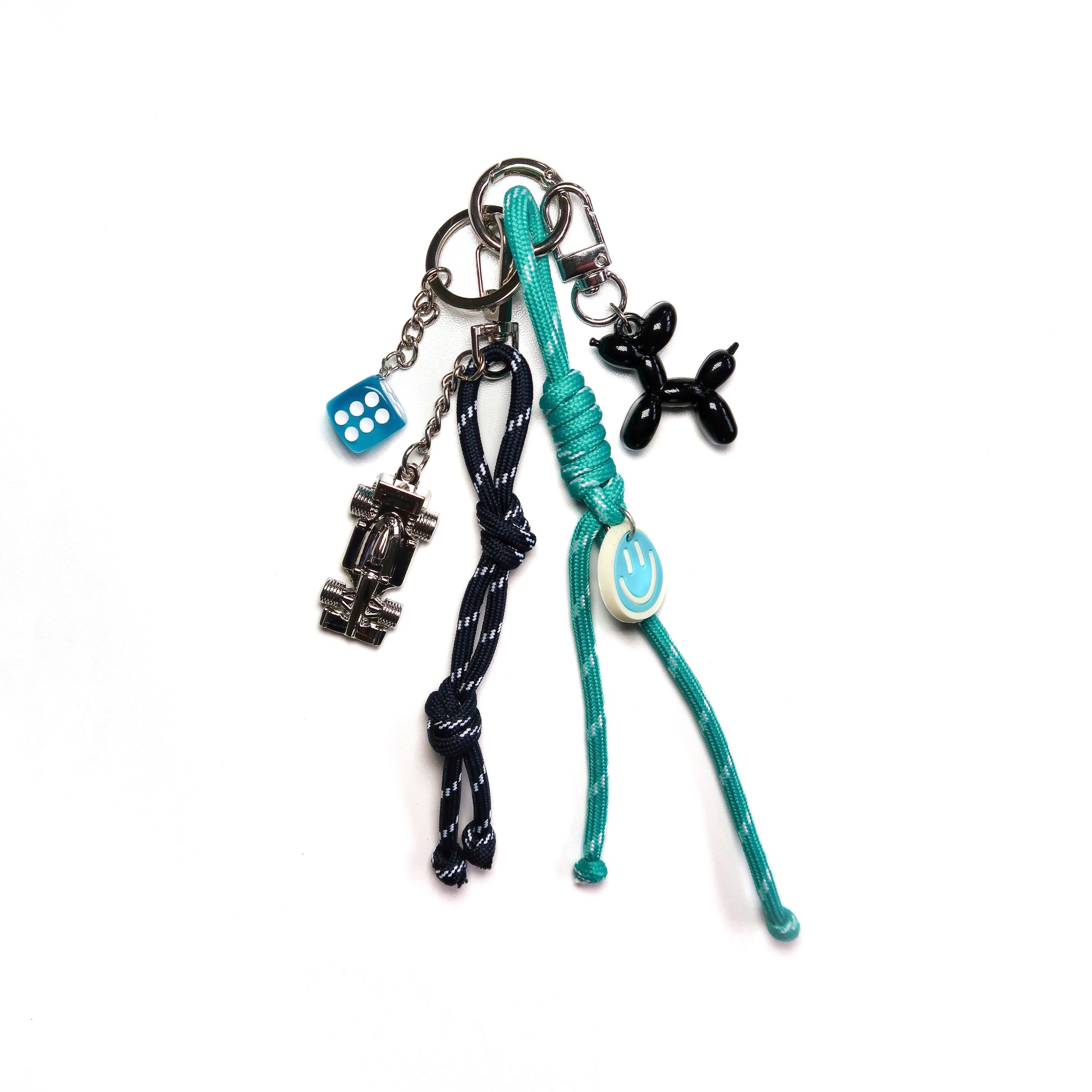 Hand-curated charm with balloon dog, nylon rope tassels and your very own pocket-sized race car.