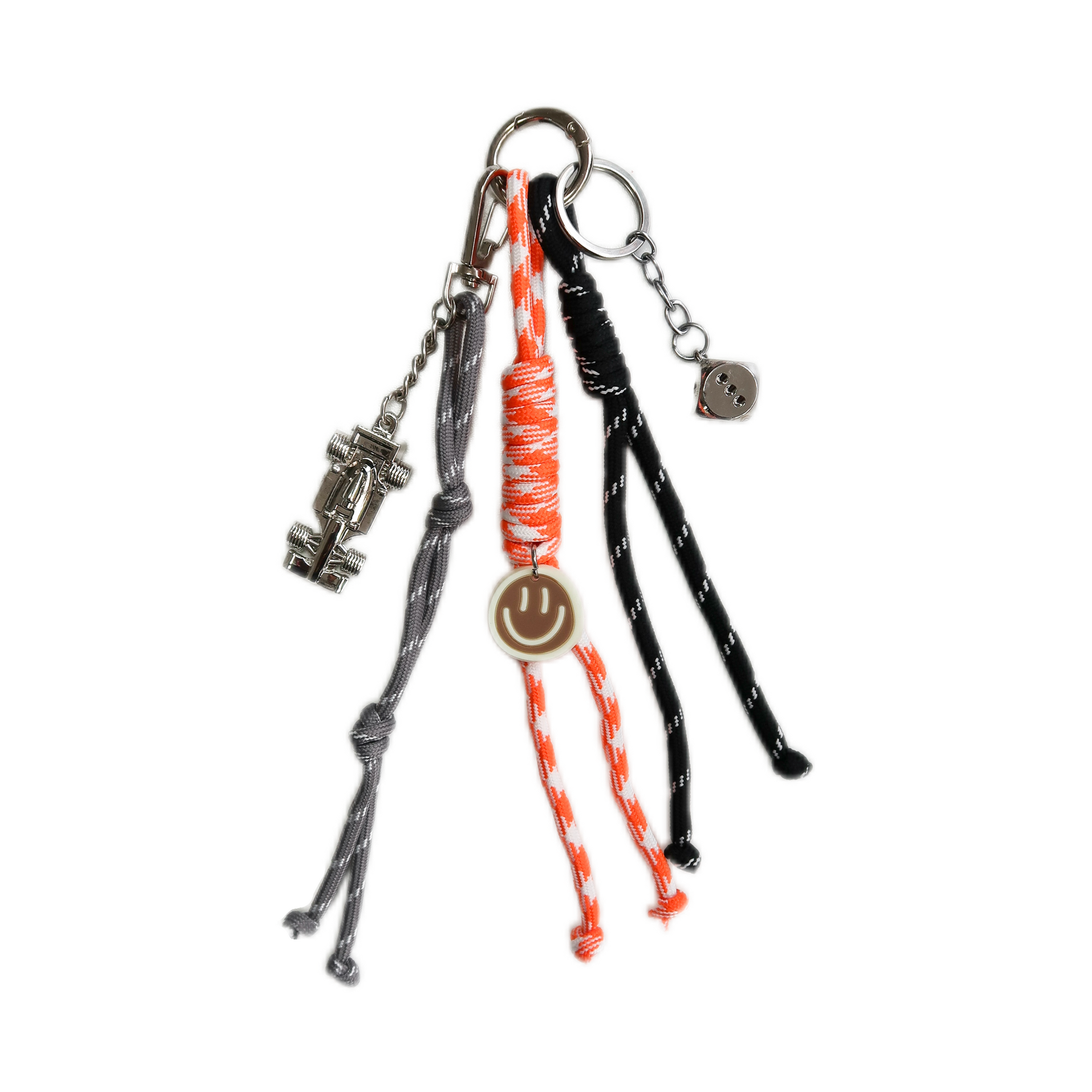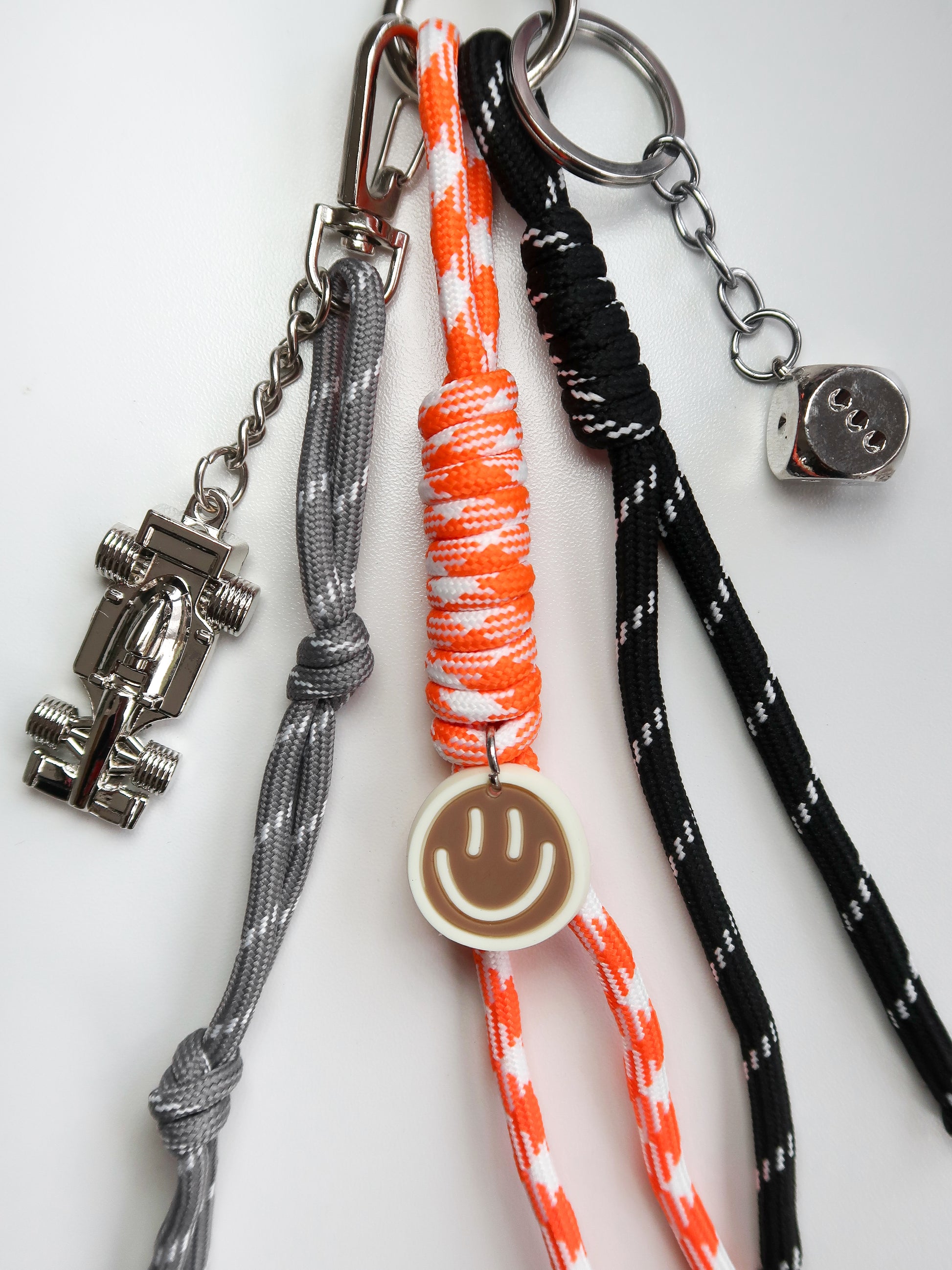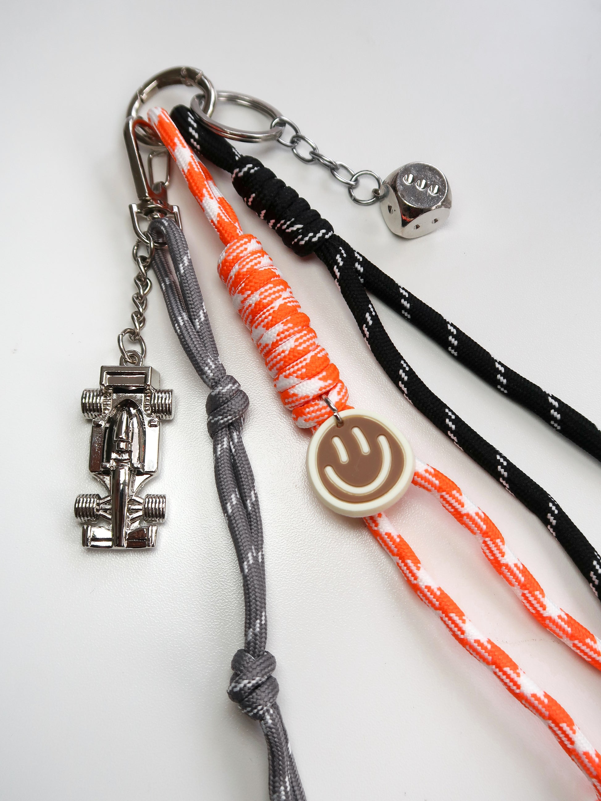 Hand-curated charm with nylon rope tassels, chrome dice and your very own miniature racecar to match.