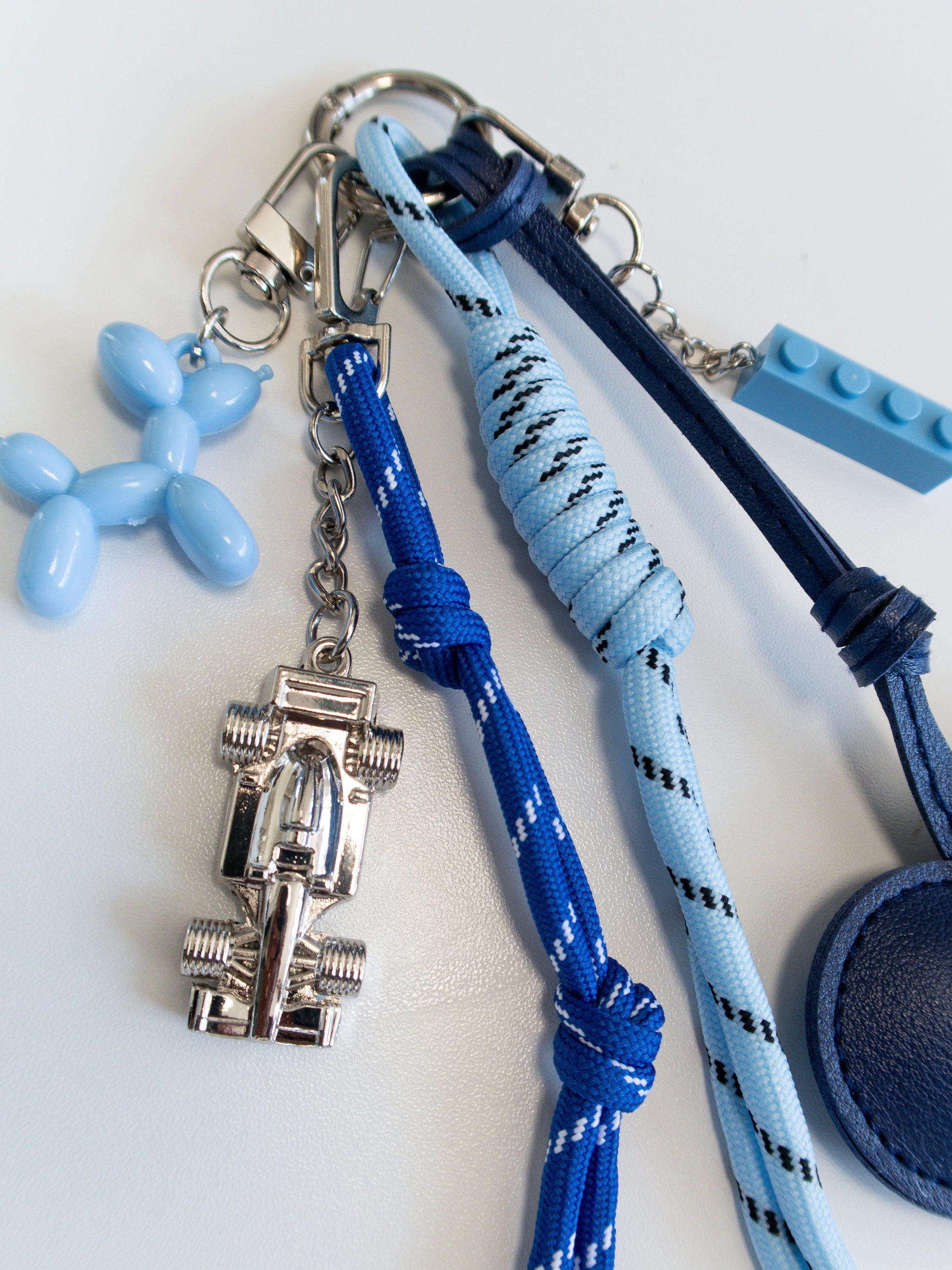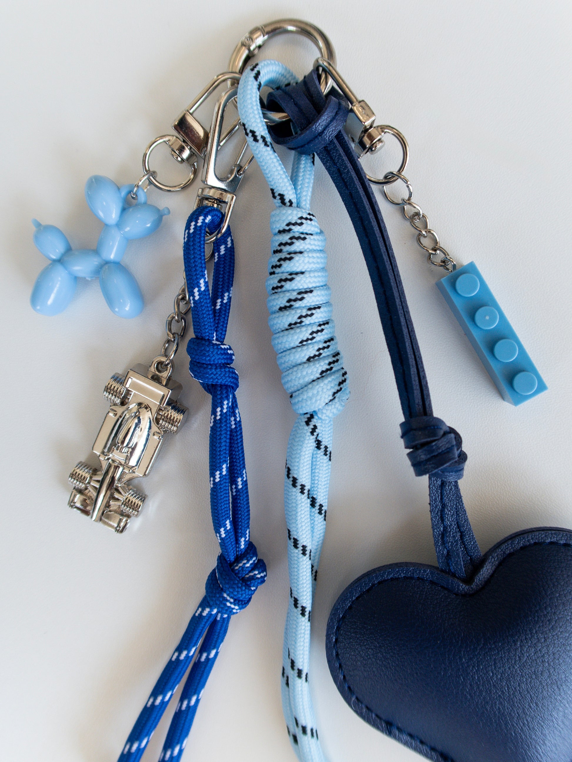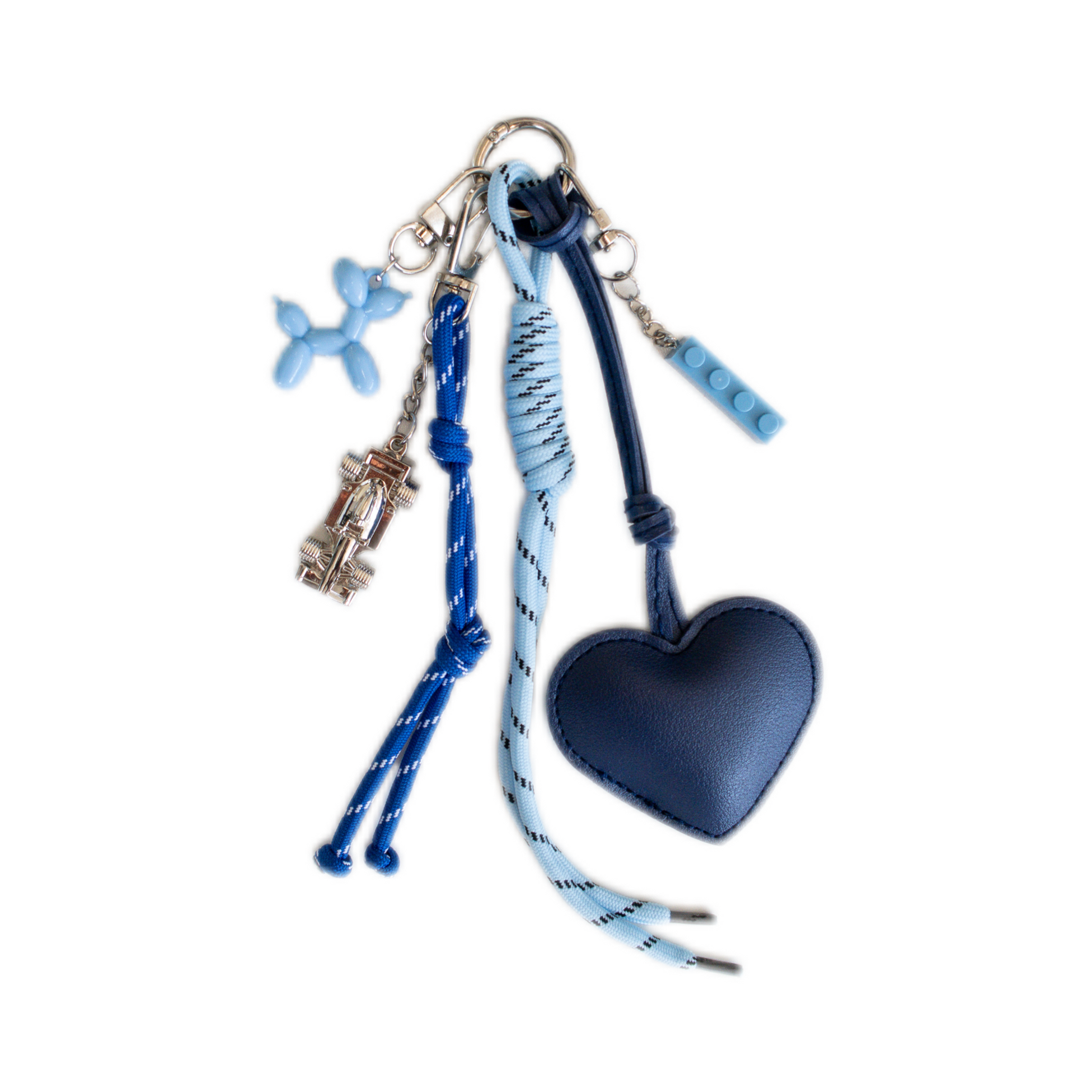 Hand-curated charm with PU leather heart, balloon dog, nylon rope tassels and your very own pocket-sized race car.