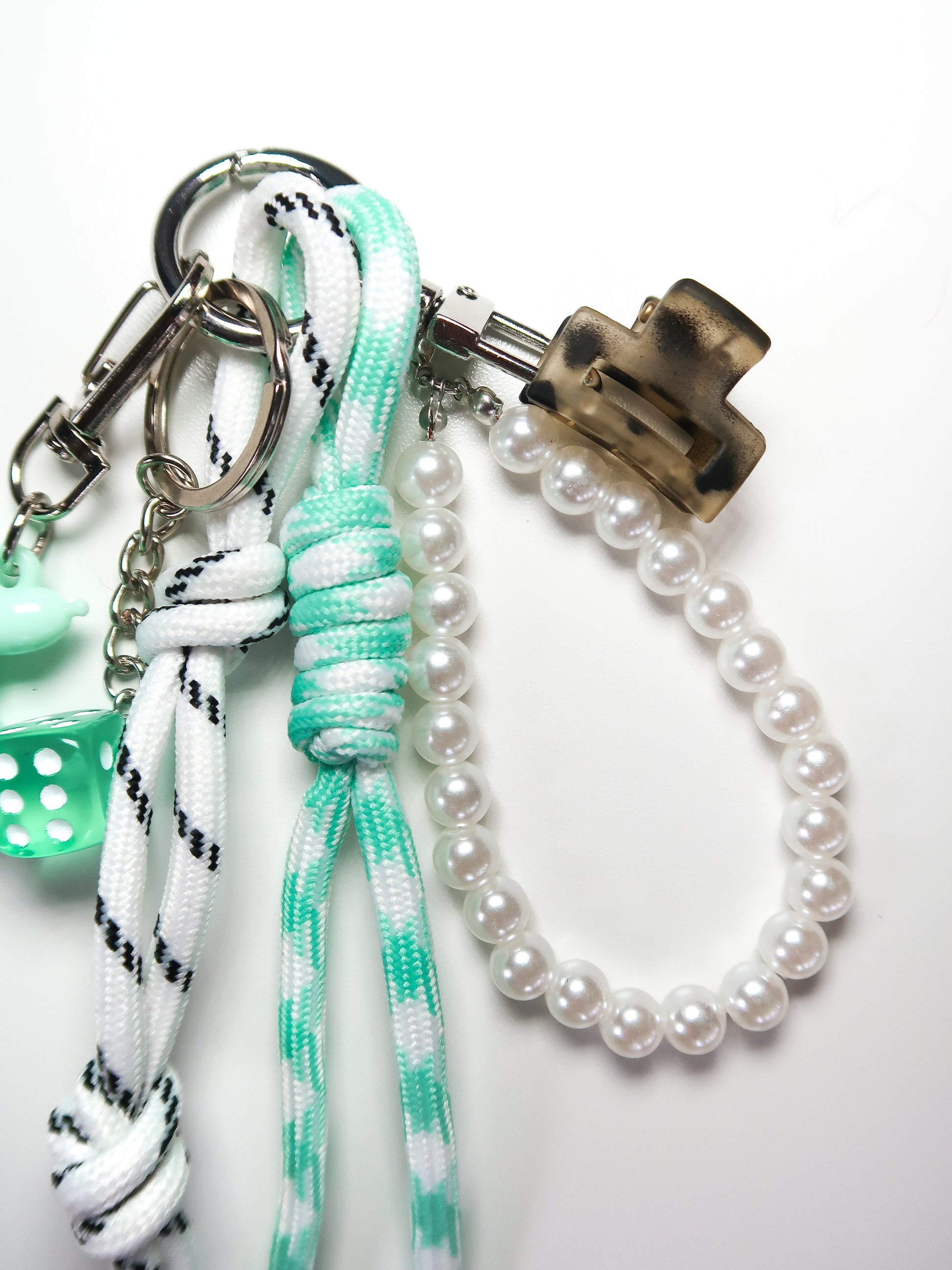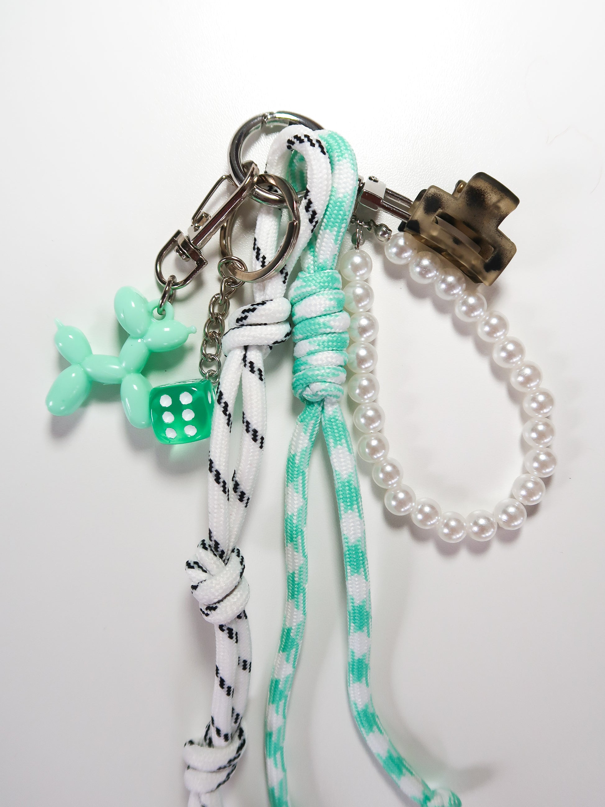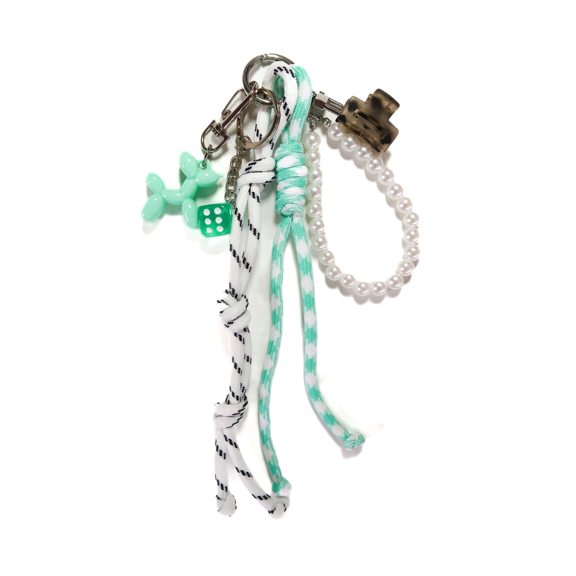 Hand-curated charm with balloon dog and pearl-effect beads, complete with a miniature claw clip.