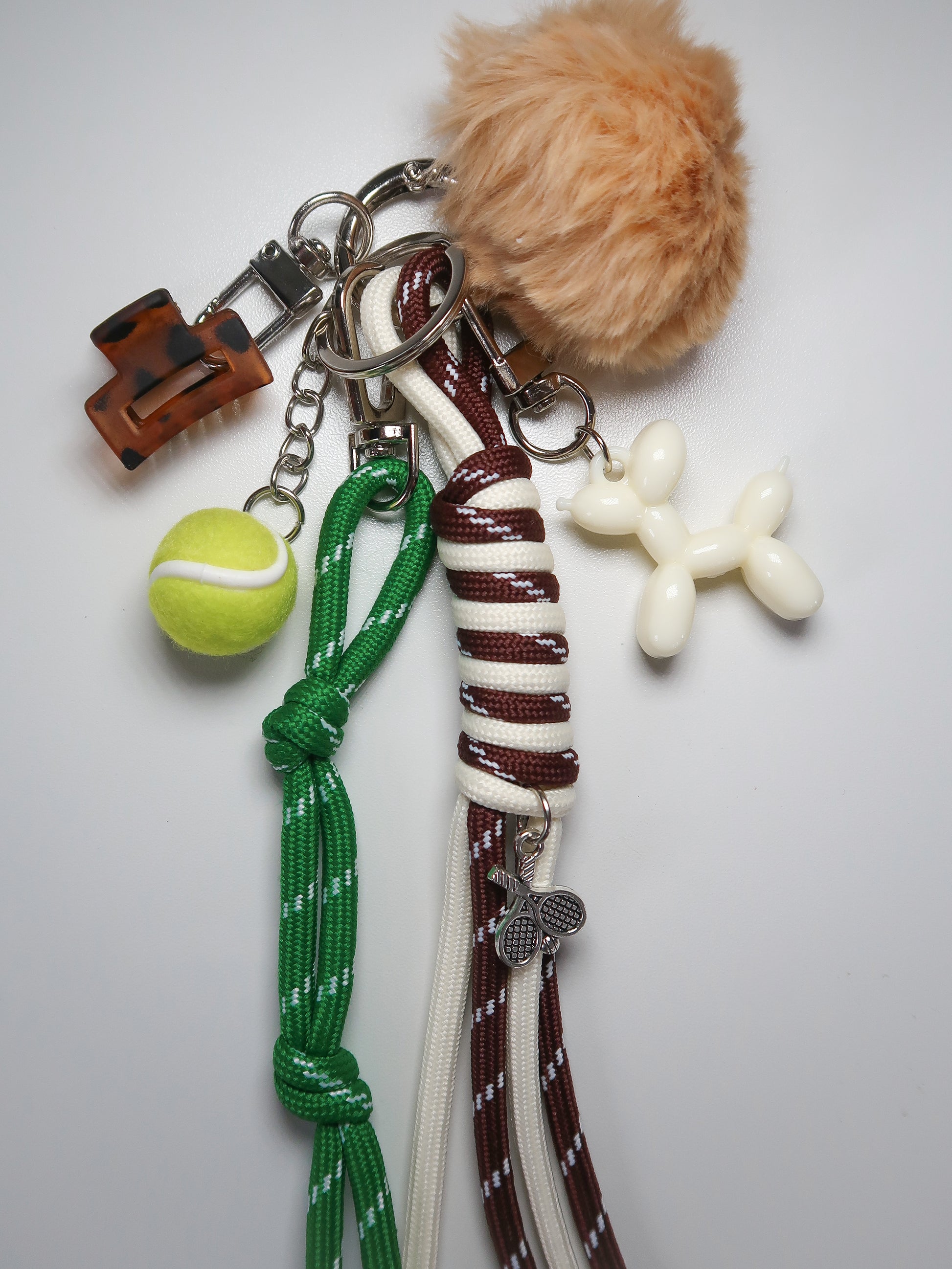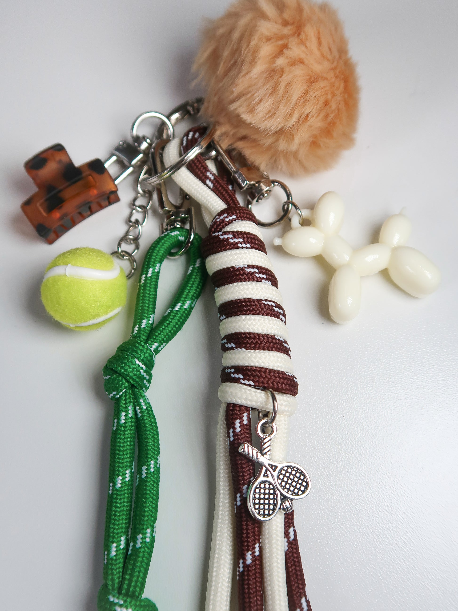 Hand-curated charm with pom-pom, balloon dog, nylon rope tassels and your very own pocket-sized tennis ball