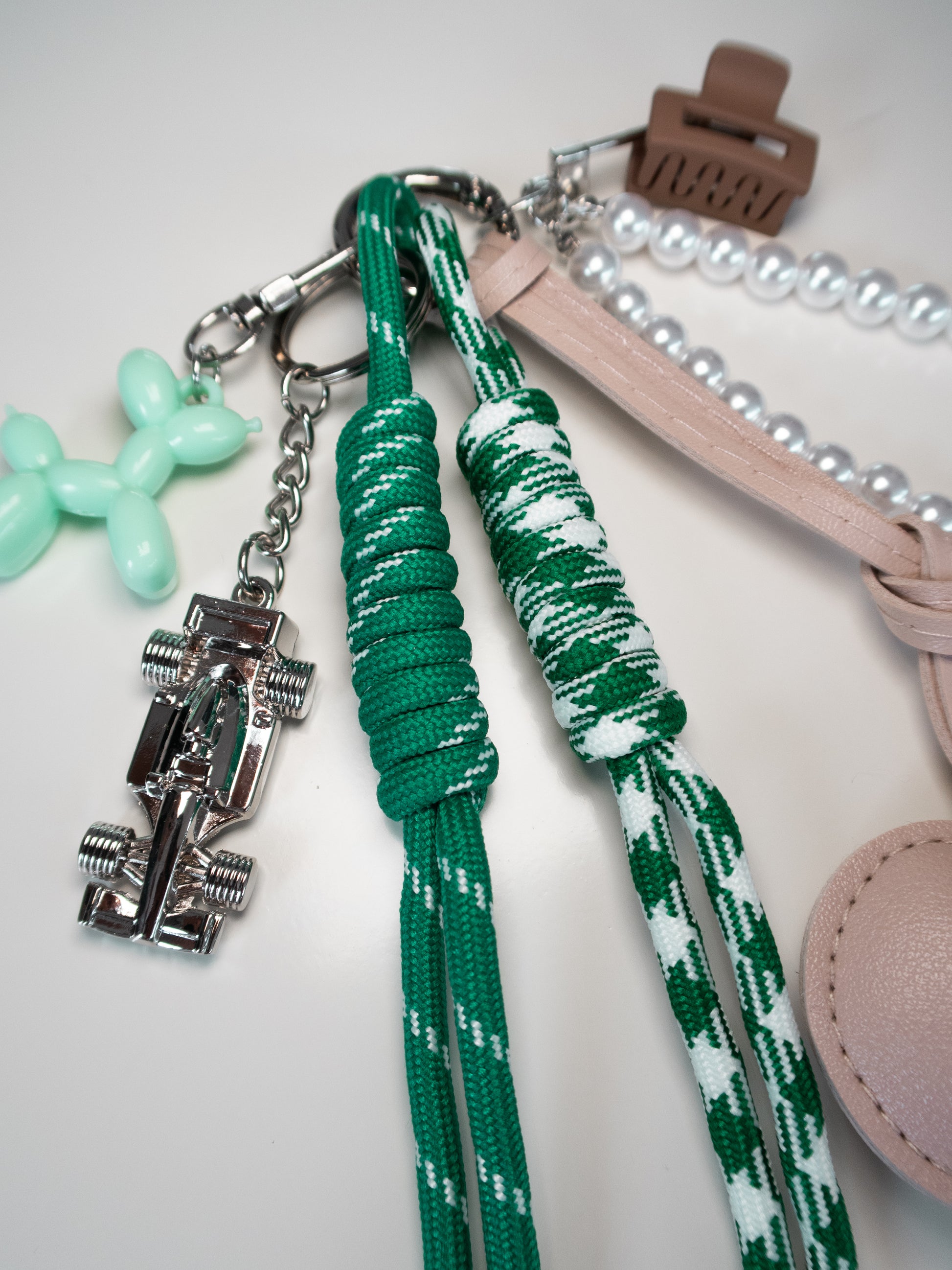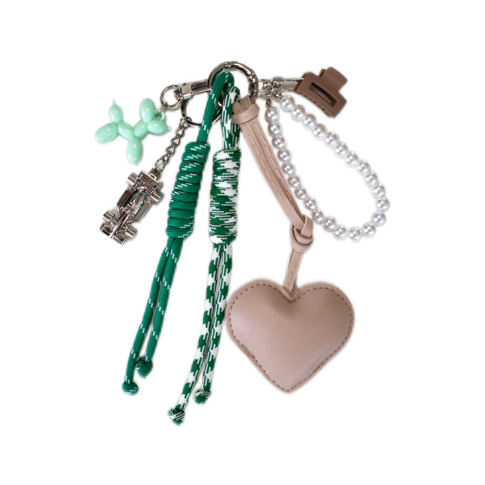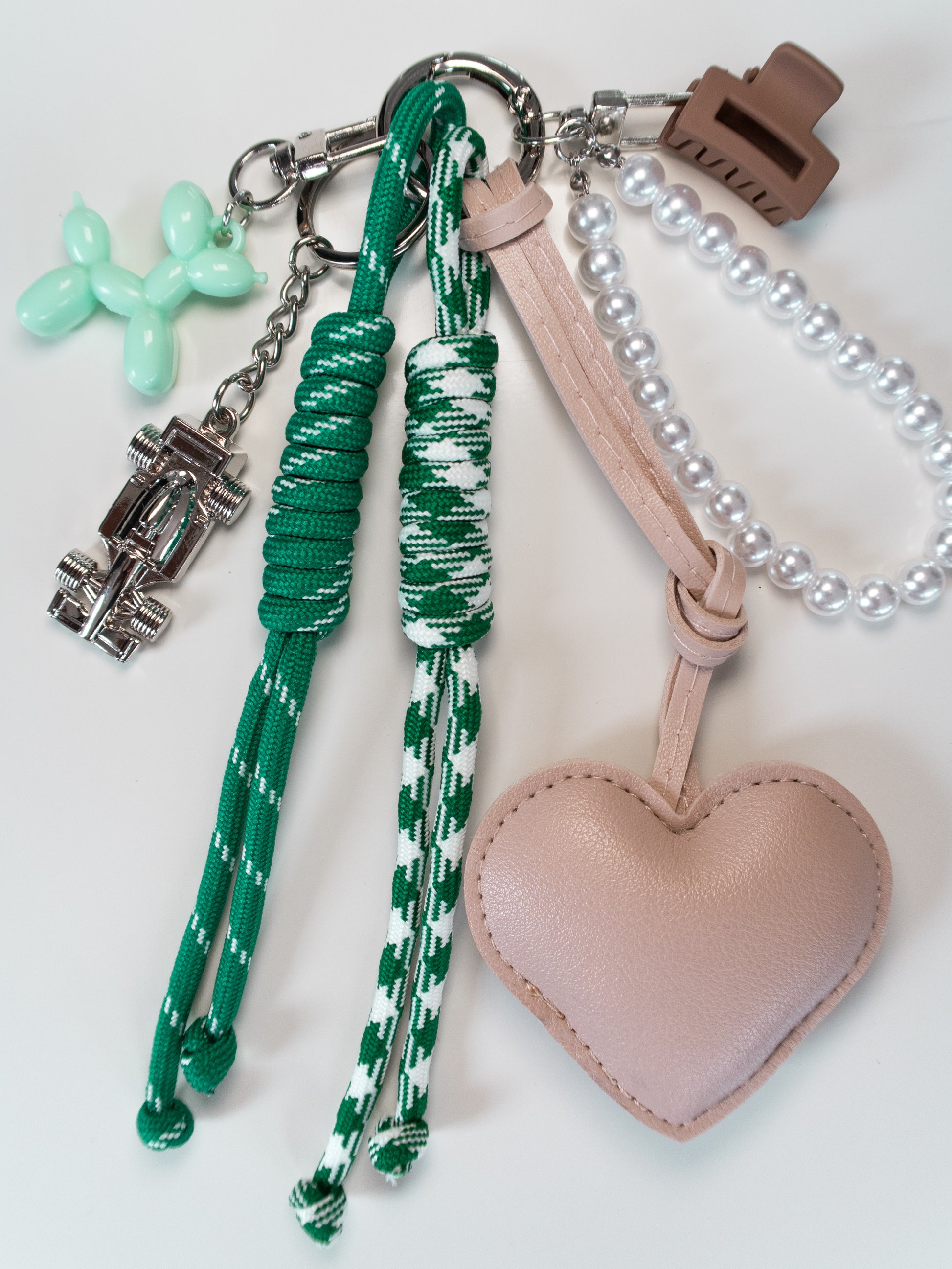 Hand-curated charm with PU leather heart, pearl-effect beads, balloon dog and your very own pocket-sized race car.
