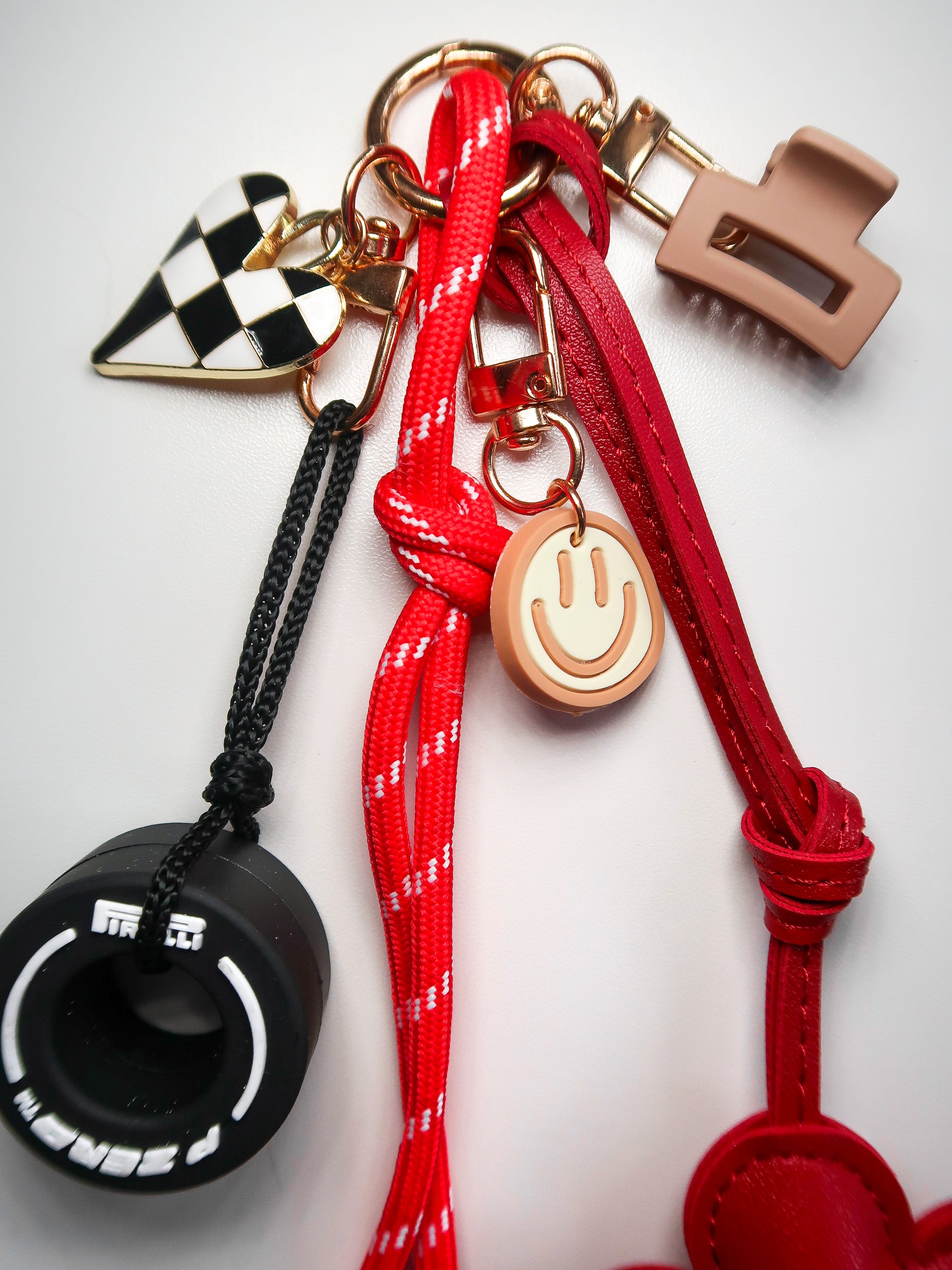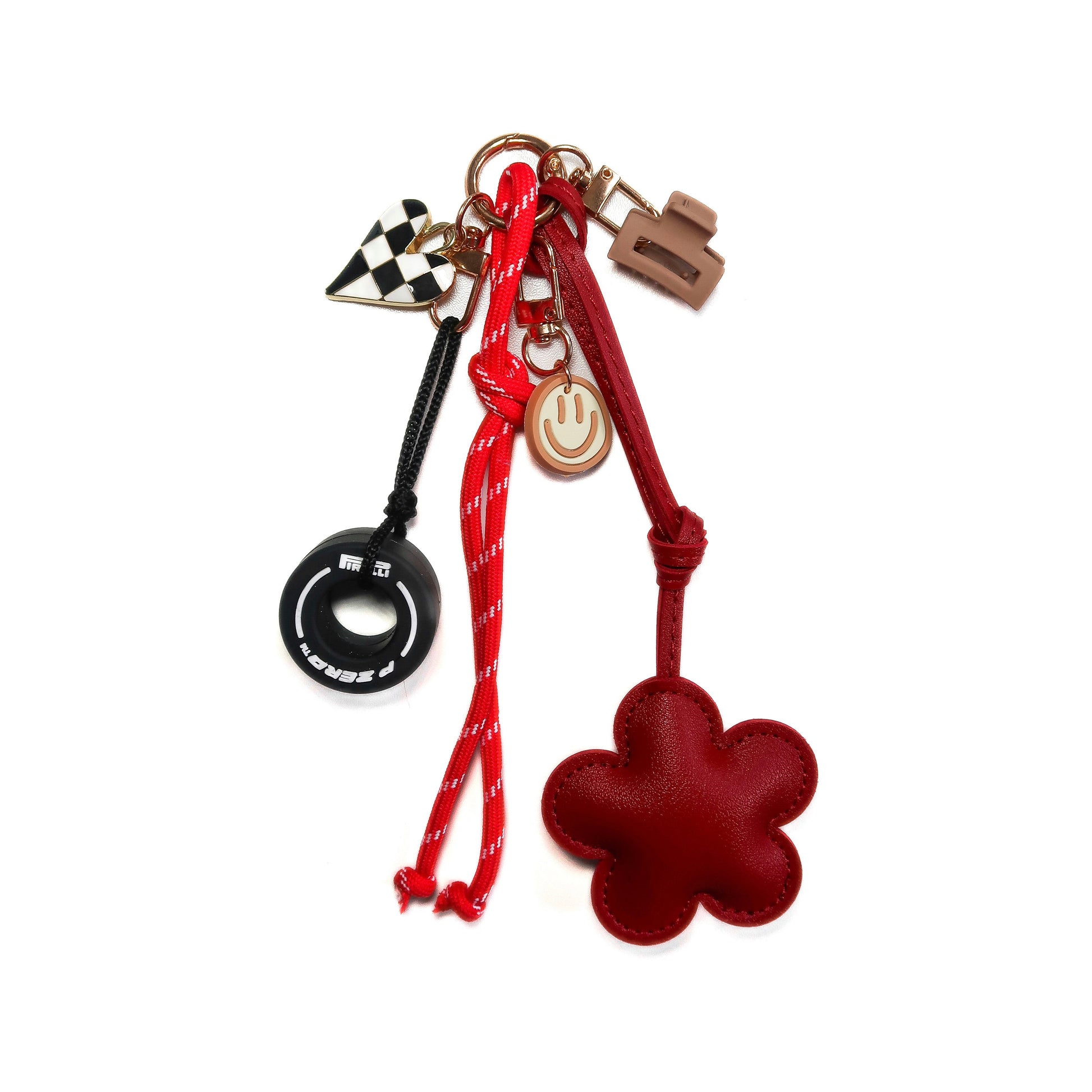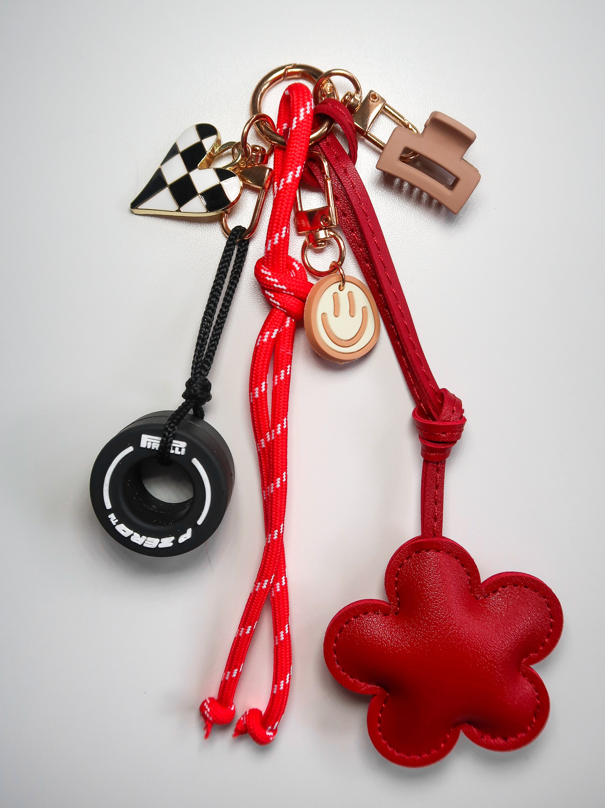 Hand-curated charm with chequered heart, PU leather flower, claw clip and your very own miniature tyre.