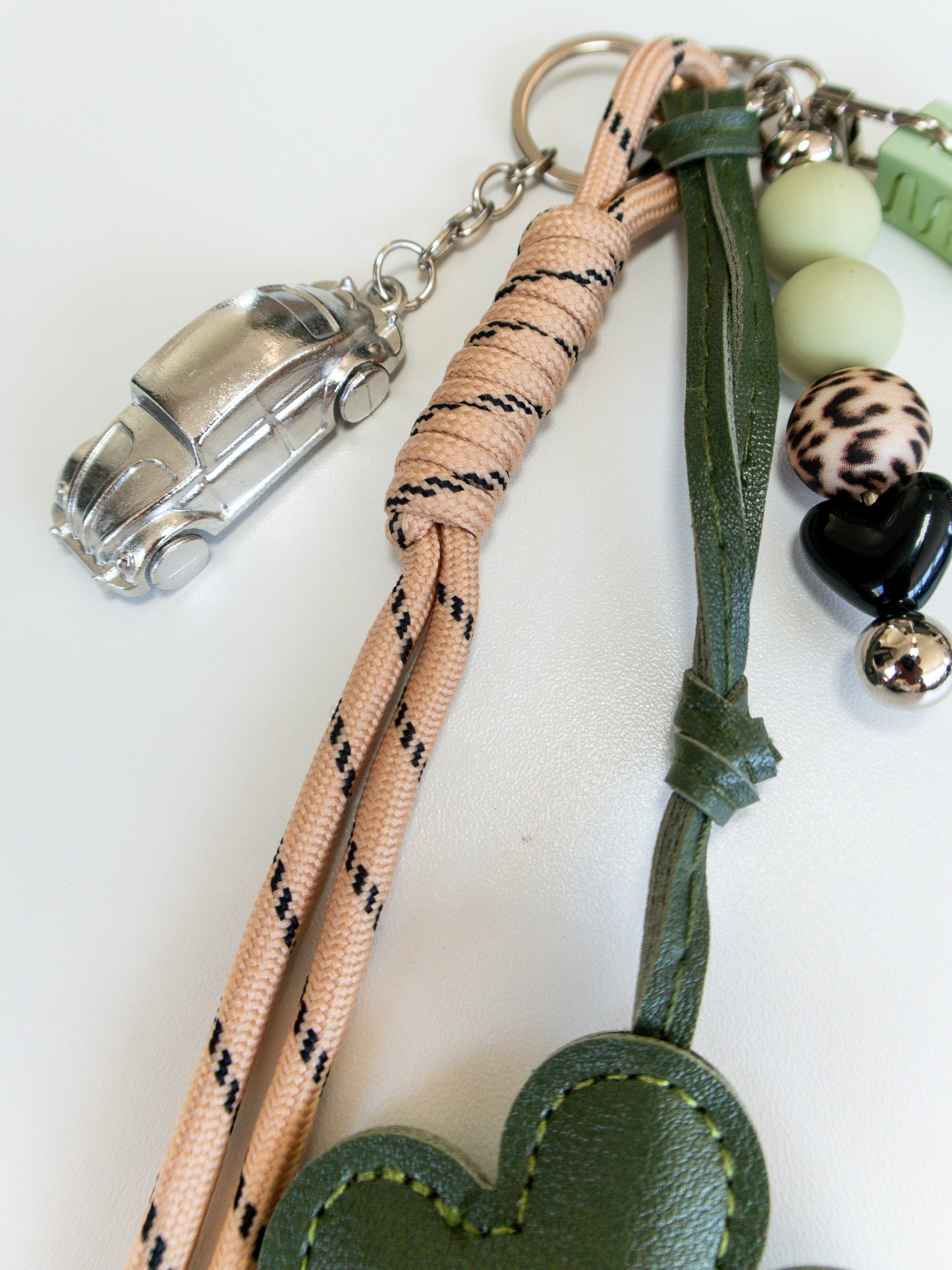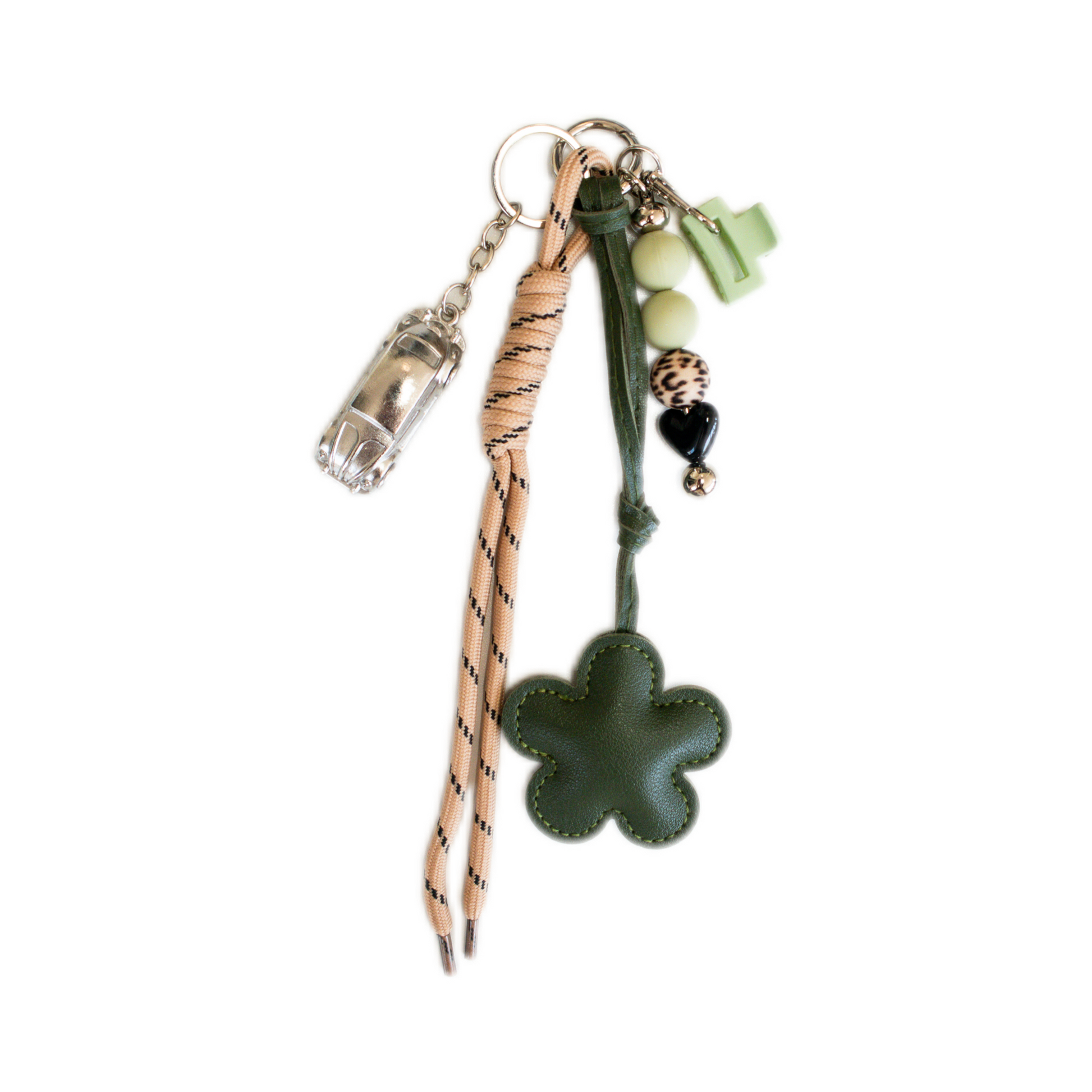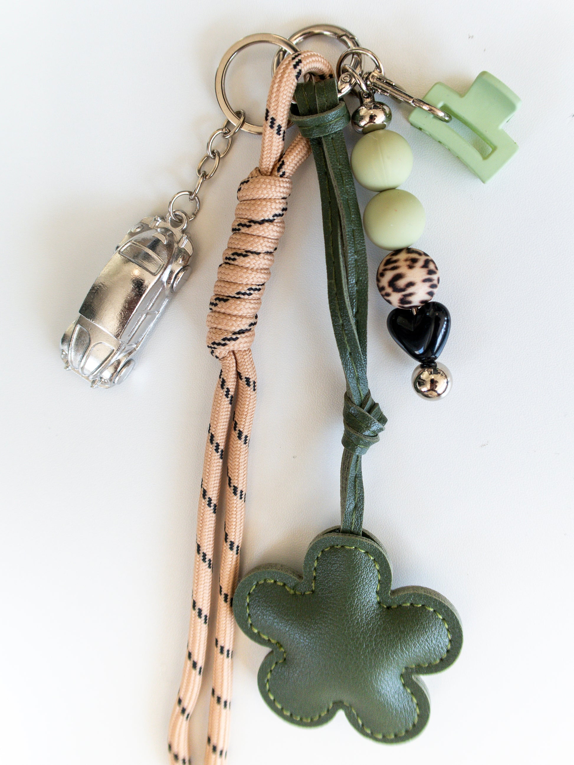 Hand-curated charm with PU leather flower, silicone beads, miniature claw clip and your very own pocket-sized classic car.
